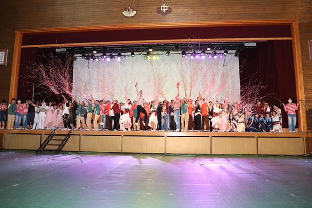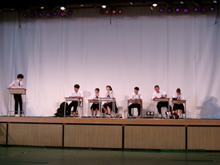 Teamwork makes the dream work! | 文化祭がいよいよ翌日に迫った14日、体育館では高1を中心に、クラス、クラブ等ステージ発表を行う団体のリハーサルが終日に渡って行われました。1年生演劇は、オリジナルのものを筆頭に、定番の名作ストーリーにオリジナルエピソードを盛り込んだものまで7作品がラインナップ、初日の明日15日に全作品が上演される予定です。 リハーサルでは、(ヨユウなクラスからアタフタなクラスまで)キャストの役回り、音響、照明、舞台セット位置など、入念に直前チェックが行われていました。本番は一発勝負のライブパフォーマンスですが、準備を通して培ったクラスの団結力をチームワークでしっかりと昇華させ、素敵なステージで締めくくってください。 |