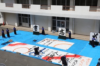 - 書道部:体育館前で書道パフォーマンス