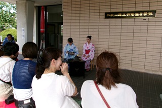 - 茶道部:玄関でお茶会