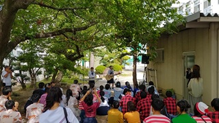 - 弾き語り:中庭に美しい歌声が響き渡り、観客は楽しそうに耳を傾けていました。