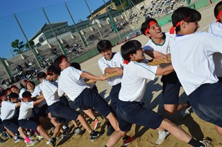 タフ&ワイルドなせめぎ合い、高1男子騎馬戦。