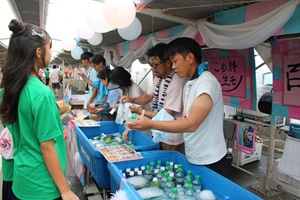 PTAの皆さんは、子ども達のために役に立つこと喜ぶことをしようと考え、制服や体操服、赤本などのリユースと、暑くて喉が渇くことを予想し飲み物を安価に提供するバザーを行いました。